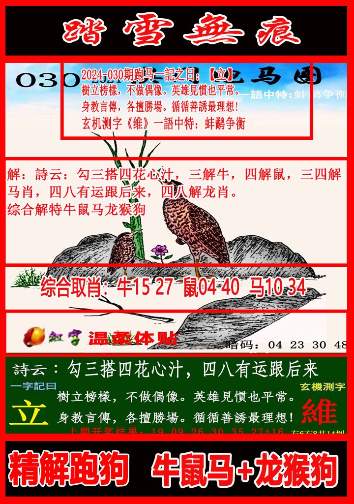 030期六肖中特【狗鸡虎鼠马牛 】 |