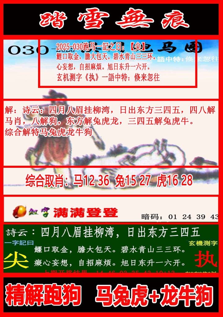 2026-030期正版彩图挂:46;挂牌:举国一致;六肖:马牛虎羊兔猪;火烧:蛇